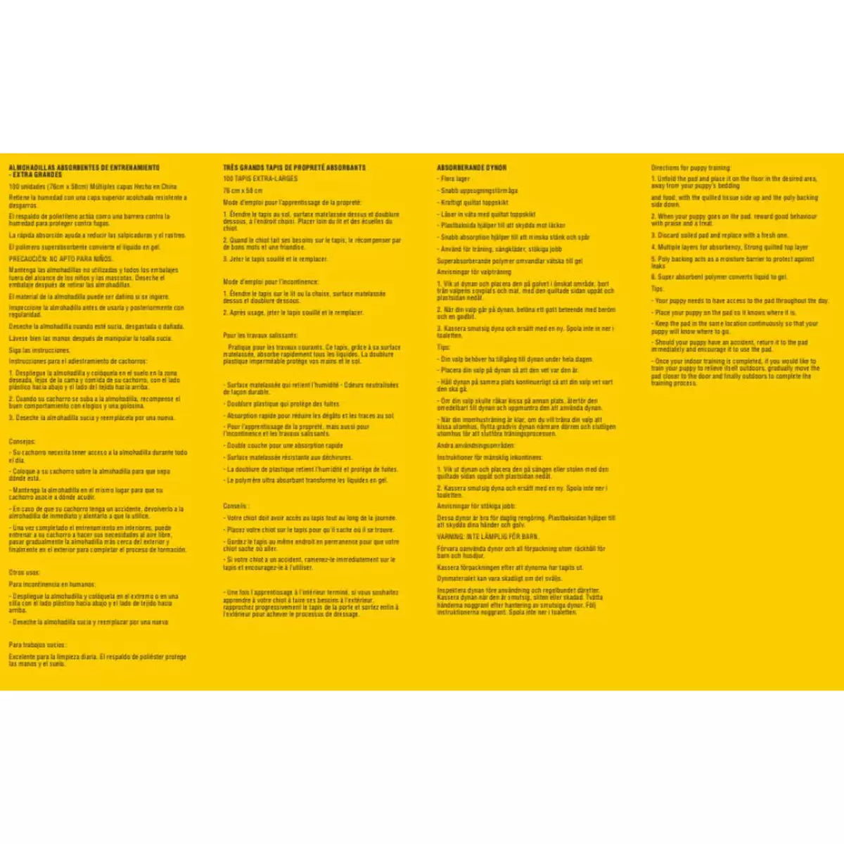 Kirkland Signature Extra Large Absorbent Pads provide floor protection for puppy training, mature dogs and everyday messy jobs at home, work or away. Each 76 x 58cm pad is guaranteed leak proof, with around-the-clock odour control and quick absorption. Each pad has multiple layers for fast absorbency with a strong quilted top layer and super absorbent polymer layer which converts liquid to gel.