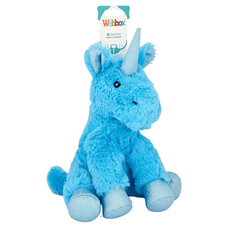 5) Webbox Plush Unicorn Blue Dog Toy